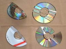 ふと思ったのだが、どうもレーベル面を内側にして曲げると割れにくいような気がする。比較実験でないとイミないため、先日買った「TECH Win」1月号付属のCDROM2枚(写真下2ツ。同質であろうと思われる。上2ツは音楽CD)で表方向裏方向両方試してみた。うん、なんかそんな感じ。