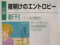 ダン・シモンズ『夜明けのエントロピー』(河出書房新社)←装丁イカス。2003年12月3日追記:『夜明けのエントロピー』じゃなくて『夜更けのエントロピー』でした。