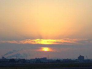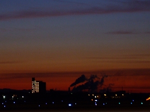 しごと中、朝焼けがあまりにもすごいのでデジカメで撮ってみたんだけどいざ家のパソコン上で画像を開いてみるとその美しさの百分の1も再現できてなかった。