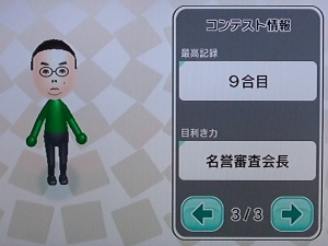 WiiのMiiコンテストチャンネルにコツコツコツコツ参加し続けて、こないだやっと名誉審査会長に。