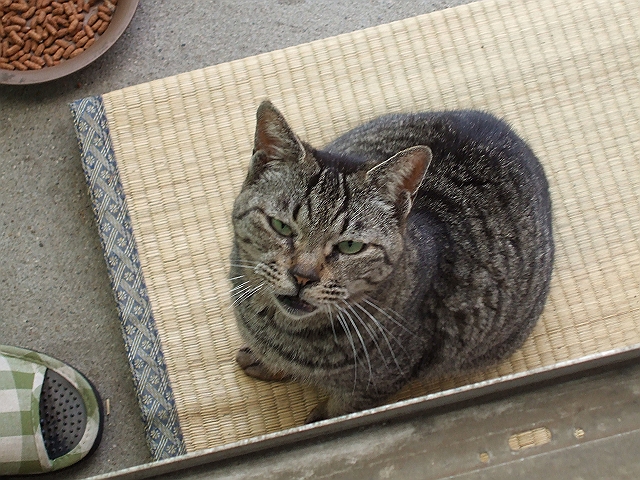 今年の春ぐらいからはどうせこの家俺ひとりなもんでごはん食べるときはウチの中に入れてた。最初のうちはホント警戒してゼンゼン入ってこようとせんかったなあ。そんでもちょっとづつ奥のほうまで入ってくるようになった。わりとTVがスキな子で、最近では夕方におじゃる丸とか観ながら一緒にごはん食べるのが日課になってた。