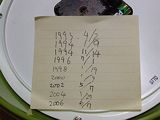 昭和63年(約20年前)からは、電池交換した日付を記入するようにしとったみたいやね。知らんかった。俺も今日の日付を記入しといた。