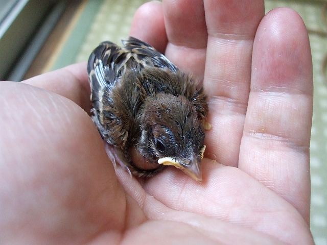 2日前の夕方、お庭でスズメの雛を保護してもうた。